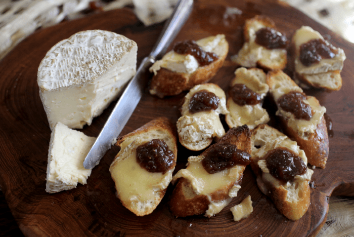 I adapted this idea from Cow Girl Creamery which they used as a part of a delicious chicory salad.  Easy to make.  Pop into the oven to melt the cheese just before serving.