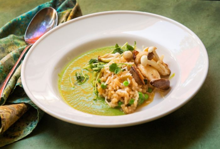 FRESH PEA AND MOREL RISOTTO WITH PEA BROTH