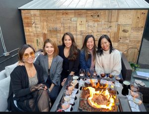 Fat Cat Wine Club founder Jessica Ryan Bell, far right, surveys the scene at one of her club events. [Photo courtesy Jessica Ryan Bell]